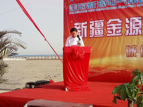 在开工典礼上,金海新源电气集团董事长朱冬宏致欢迎词,向来宾介绍了集团公司的发展历程及产品市场占有率,并对项目的基本情况进行介绍。朱冬宏说,公司将秉承“诚信筑基业、感恩共成长、拼搏赢未来”的核心价值观,以保证品质为第一前提,满足客户需求为最高目标的原则发展企业,今天的开工典礼标志着新能源发电配套设备产业化项目厂房建设工作全面启动,并承诺按照“项目快、早投产”的要求,全力以赴的进行工程建设,早日投产见效,为建设和谐托克逊、绿色托克逊,实现托克逊县经济跨越式发展共铸华章、谱写辉煌。