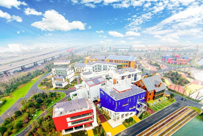 江苏绿色建筑博览园里的12栋建筑采用了汉能的薄膜太阳能发电系统