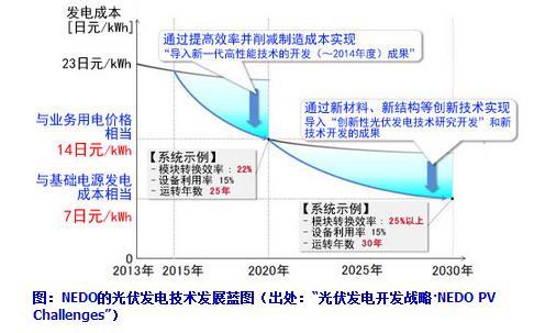 图:NEDO的光伏发电技术发展蓝图(出处:光伏发电开发战略NEDO PV Challenges)