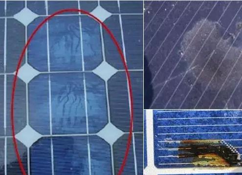所谓光伏热斑效应,是指太阳电池组件在阳光照射下,由于部分组件受到遮挡无法工作,将被当作负载消耗其他有光照的太阳电池组件所产生的能量,使得被遮盖的部分升温远远大于未被遮盖部分,致使温度过高出现烧坏的暗斑。热斑效应可能导致整个电池组件损坏。