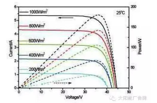 5、光伏组件的最大输出功率随着太阳辐射强度的增强而增大;随着太阳辐射强度的减弱而减小。