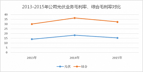 2013-2015年公司光伏业务毛利率、综合毛利率对比