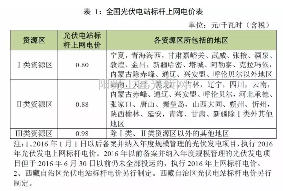 光伏电站:根据各地太阳能资源条件和建设成本,将全国分为三类标杆上网电价区,相应制定光伏电站标杆上网电价。