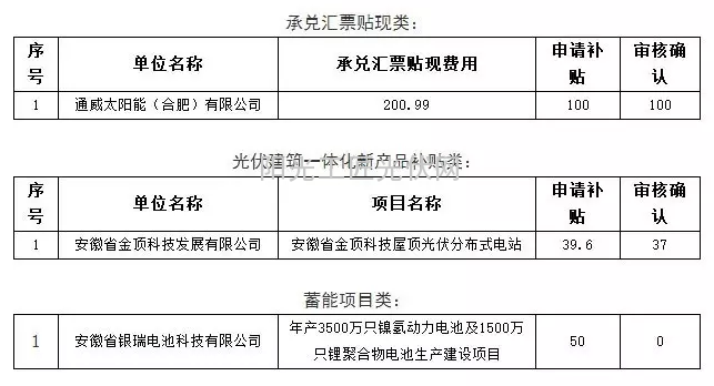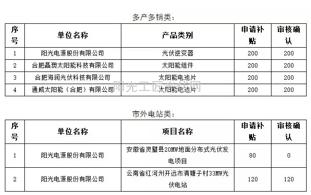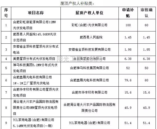 2016年4月21日,合肥市经济和信息化委员会、合肥市发展和改革委员会、合肥市农业委员会、合肥市财政局联合下发《关于合肥市2015年度支持光伏产业发展类政策兑现的公示》。