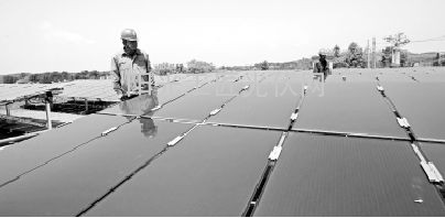 供电工作人员正在光伏板前进行巡查612块光伏板均匀排列在废弃的打谷场上,26度仰角朝南面向天空,由一根电线连接逆变器接入电网,墙壁上的独立电表则实时显示光伏组件的发电量。昨日,作为武汉市首个“光伏扶贫”项目试点村,武汉市黄陂区木兰乡富家寨村的光伏发电站正式并网发电。首日上网电量超300度,卖电收入将达300多元,年利润可达5万多元。