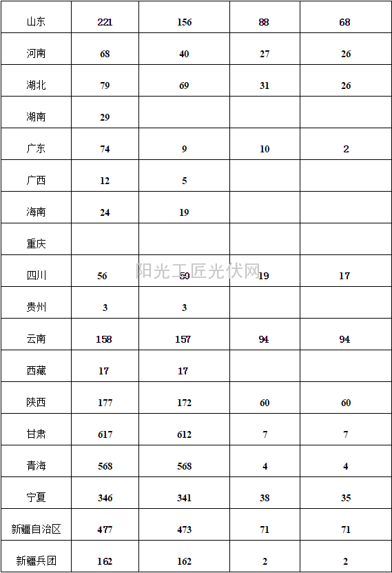 一季度光伏发电格局发生变化。华北、华东、华中和南方地区新增光伏发电装机均超过100万千瓦,分别为150万千瓦、131万千瓦、130万千瓦和104万千瓦,新增装机规模超过50万千瓦的省份包括:云南94万千瓦、山东88万千瓦、新疆71万千瓦、陕西60万千瓦、安徽58万千瓦、浙江53万千瓦和江西52万千瓦。华北、华东、华中和南方累计光伏发电装机总计达2560万千瓦,已超过西北地区的2364万千瓦。中东部地区累计光伏发电装机容量超过100万千瓦的省份包括:江苏440万千瓦、河北272万千瓦、山东221万千瓦、浙江217万千瓦、安徽179万千瓦、山西122万千瓦。全国各省(区、市)2016年第一季度光伏发电建设运行信息简况详见附表。