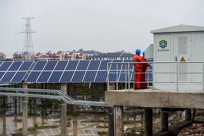 4月21日,工作人员在对光伏发电设备做投运前的巡查。 新华社记者徐昱 摄