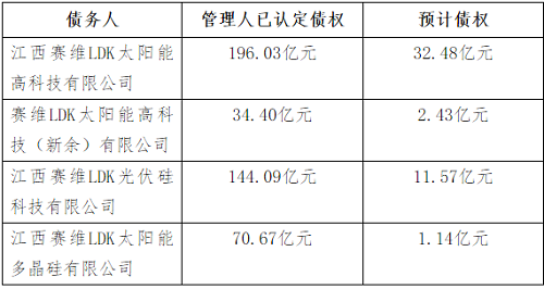 截止2016年4月20日,管理人认定的赛维四公司债权及预计债权如下: