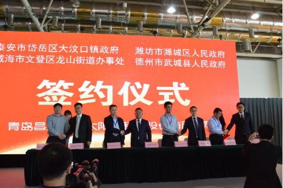 近日,“第十一届中国(济南)国际太阳能利用大会暨展览会”在济南圆满闭幕。会上,青岛昌盛日电太阳能科技股份有限公司(以下简称“昌盛日电”)签署了多项光伏农业园区投资开发协议,涉及投资总额高达63.5亿元,其中包括泰安岱岳区大汶口200MW光伏现代农业产业园区项目、德州武城县100MW光伏现代农业产业园区项目、潍坊潍城区20MW光伏现代农业产业园区及威海文登区20MW光伏现代农业产业园区。山东省节能办资源节约处处长王玉刚、副处长赵明、省发改委能源交通处副处长王梦学、山东能源监管办公室资质处处长刘伟、昌盛日电董事长李坚之均出席了当天的签约仪式。