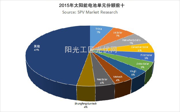 除了排在第5名的美国企业第一太阳能(FirstSolar),前十名的主要单元生产基地均设在中国。