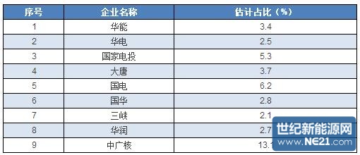 目前中国的电力市场中,以华能、华电等巨头企业构成的“五大豪门、四小豪门”,占据了60%以上的份额,火电可再生能源配额的主力,也是他们!根据业内专家王淑娟的计算,截止2014年底“五大四小”发电集团的并网风电、光伏发电量估计比例为:
