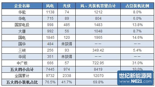 注:数据来源为王淑娟微信。未能找到国华、华润的光伏发电项目的装机容量。