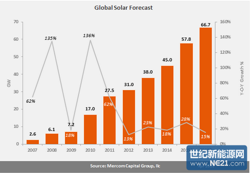 Mercom资本还预计,今年,中国新增太阳能装机容量将从2015年的15.1吉瓦增至18.5吉瓦。根据中国能源局披露的数据显示,今年一季度,中国已经完成7.14吉瓦太阳能装机容量,使得全国累计装机已经超过50吉瓦。