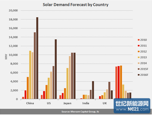 其中,中国、美国、日本和印度将是今年新增太阳能装机容量贡献最大的四个国家。