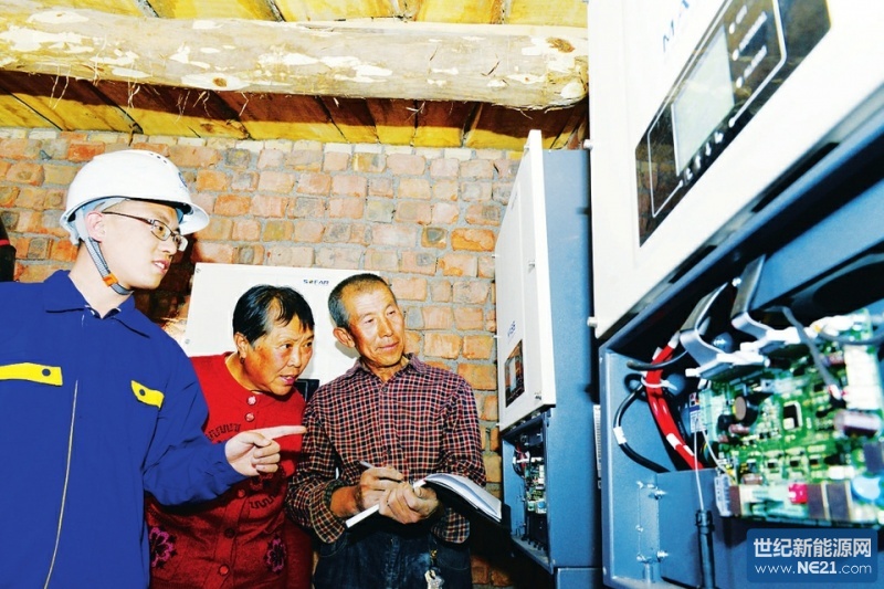 新荣区晶昊新能源开发有限公司运维部工作人员为夫妻俩讲解逆变器的运行原理。