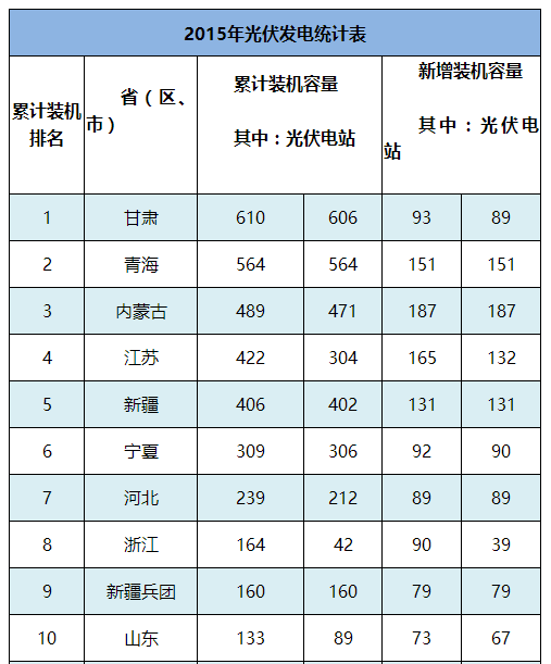 再看一些更新的数据,国家能源局发布的《2015年光伏发电相关统计数据》,截止去年底江西累计装机容量为43万千瓦,其中光伏电站17万千瓦,当年新增装机容量仅4万千瓦。江西的成绩如何?华夏能源网特约作者对2015年各省数据做了排名,江西的实际情况如何大家自己看!