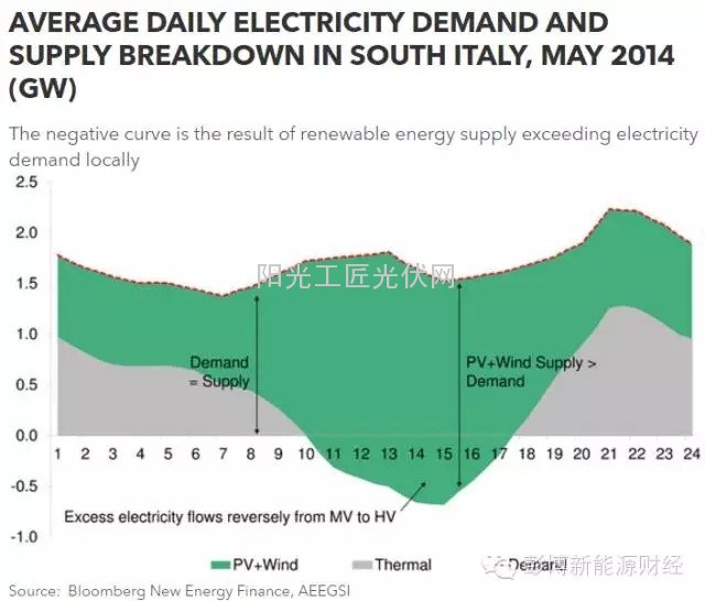 有趣的是,过去风电比光伏项目更让人担忧,对于高压电网来说尤其如此。意大利Southern Appenine山脉人口稀少,电力需求最低。该地区在2009年的弃风量高达700GWh,相当于意大利同年风电发电总量的10.7%。随后,该地区的弃风情况逐渐好转,2015年的弃风量已降至120GWh,相当于全国同年风电发电总量的0.6%。