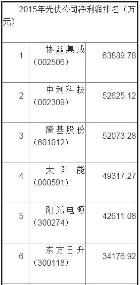 从2015年业绩看,南玻A和协鑫集成可谓是傲视群雄,超过6亿元的净利润无人能敌。