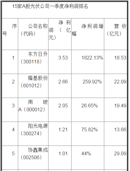 从业绩上看,2015家公司全部实现盈利,这一记录甚至一直保持到了今年一季度。2015年,最能赚钱的是南玻A和协鑫集成,两家公司净利润超过6亿;今年一季度,赚钱最多的则是东方日升,是唯一一家净利润超过3亿的光伏上市公司!
