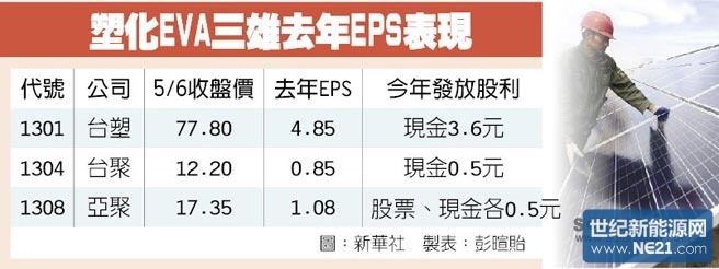 EVA包括发泡级、热熔胶级与太阳能电池封装膜等3种,发泡级EVA用于鞋底发泡材质,热熔胶级EVA可广泛应于各种材质之黏着剂,太阳能级EVA用于太阳能电池封装膜。3~8月本为EVA鞋用旺季需求,加上大陆长期太阳绿能需求走升,EVA三雄营运利基颇受期待。