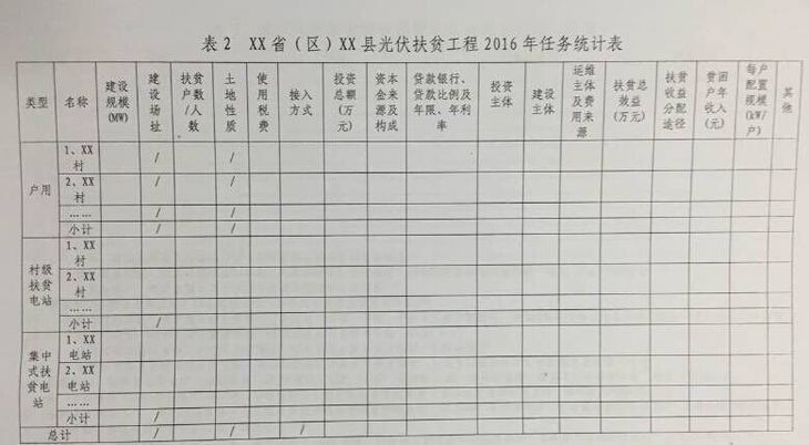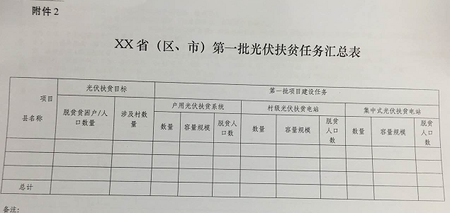 2、XX省(区、市)第一批光伏扶贫任务汇总表