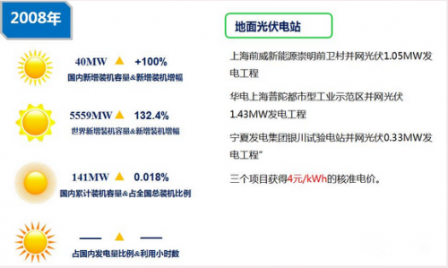 明确的核准电价和两期特许权招标,让荒漠并网电站火热起来。上网电价的明确,为未来地面电站的快速发展奠定了基础。