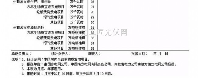 (七)本统计报表制度服务于能源行业管理需要,风电、生物质及垃圾、沼气发电量等统计数据只限内部使用,不对外发布。