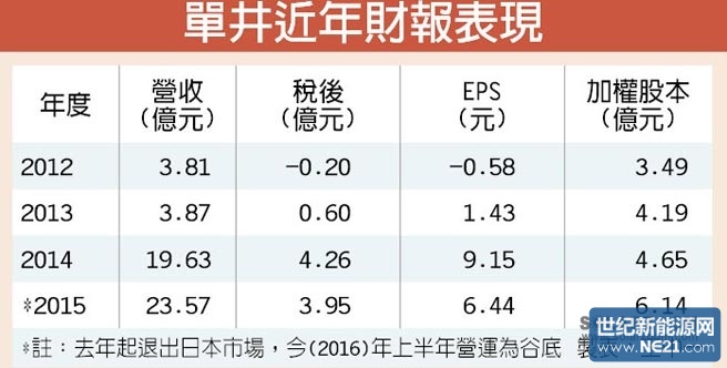 单井去年年中在日本太阳能市场尚未恶化前,就先决定撤出,当时一度被外界讥笑「跑太早」,但该公司考量的是日本官方补助降幅太快,厂商很快就要无利可图。而回过头看,确实有不少日本太阳能的电池品牌和系统大厂从去年底开始业绩急速衰退,今年更是向下探底,凸显单井当初决策有理。