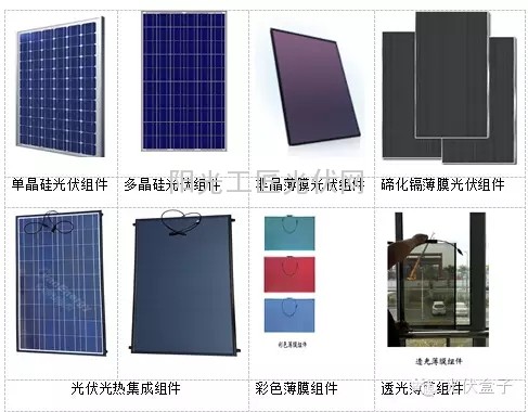 光伏电站中最主要的部分是光伏组件(或称为“光伏板”),一般来说,光伏组件分为晶硅光伏组件和薄膜光伏组件两种。晶硅光伏组件是把一组薄的晶硅电池片通过封装形成的,分为单晶硅和多晶硅两种,其中单晶硅发电效率较高,而成本也稍高;薄膜光伏组件是在光伏玻璃上通过沉积形成导电薄膜形成的,目前较常见的有碲化镉和非晶(微晶)硅两种,薄膜与晶硅相比发电效率低,成本也低,但弱光性能好,在一天之内的发电工作时间长,外形也相对比较美观,还可以根据需要做成半透光的产品。