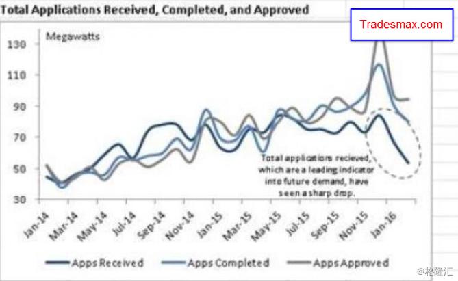 整个太阳能行业所收到的安装申请减少,暗示未来的需求量将面临显着下滑。