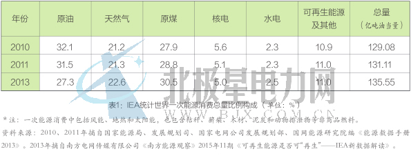 IEA与BP在全球一次能源统计中,关键差别在于IEA计入固体可再生能源,BP则未计入固体可再生能源,据IEA统计,2013年全球一次能源总供给燃料构成中,可再生能源占14.2%,其中:水电2.5%,固体燃料10.4%,其他可再生能源1.3%,说明可再生能源中固体燃料所占比重最大,这部分燃料不计入,使全球一次能源总供给失真。我国可再生能源、非化石能源统计中也没有进入固体燃料,值得注意。