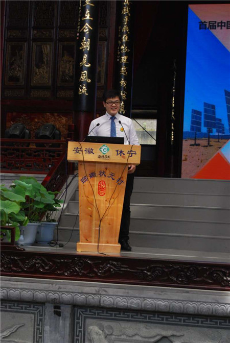 黄山睿基新能源股份有限公司首席技术官做主题为《揭秘全球最大泰国127MW山体跟踪光伏电站建设过程》的演讲
