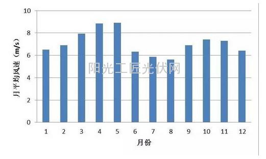 风电场所在区域属温带大陆性季风气候,多年均日照时数约2880小时,日照时间较长;多年平均太阳能总辐射量5300MJ/m2,属于太阳能资源总量“很丰富带”,适合光伏电站的建设。