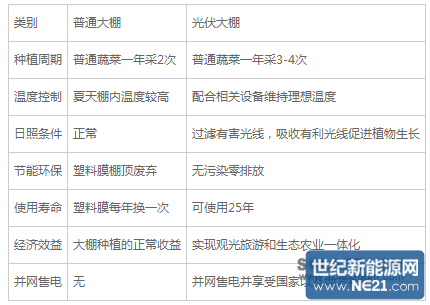 图表1:光伏农业大棚与普通大棚对比