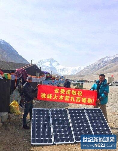 来源:世纪新能源网发布时间:2016-05-18 23:59:59 索比光伏网讯:珠穆朗玛峰号称世界第三极,巍峨宏大、峰高势伟,是众多驴友和登山者向往的神圣之地。 每年的四五月份都是登山季的高峰时期,这时前往珠峰大本营的驴友增多,生活起居用电包括手机充电需求大增 。 这么高海拔偏远地区只能依靠太阳能发电,安费诺公司 近日 为珠峰大本营赠送一套太阳能发电系统 , 包括四块组件和一体式机箱,使用安费诺UTX光伏连接器, 能供 600W电器同时工作,可以为大本营营帐灯泡,日常电器包括酥油机供电,为人们提供方便。