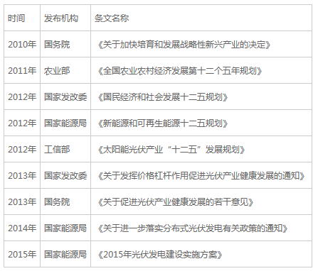 目前,光伏农业在我国已经具备一定的发展基础。基于光伏农业在帮助地方政府调整农业产业结构,提高土地利用率,增加就业,促进农业经济发展及生态文明建设、保护环境等方面起到了很大的支撑作用,近年来国家连续出台多项扶持政策。