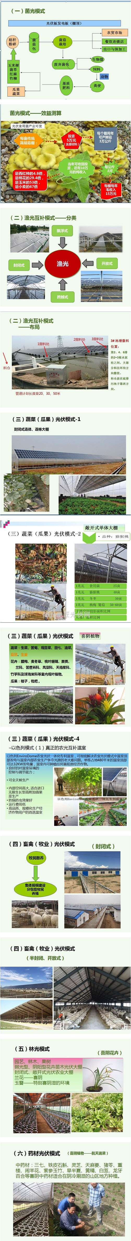 为了实现一地多用,提高单位土地产出率,在农业经营设施(或单元)的基础上科学设计、合理嫁接光伏的经营模式,就是近年来火的不要不要的农业光伏。在会上,中国农光规划设计研究院院长高祥根分享了光伏农业十大最新模式: