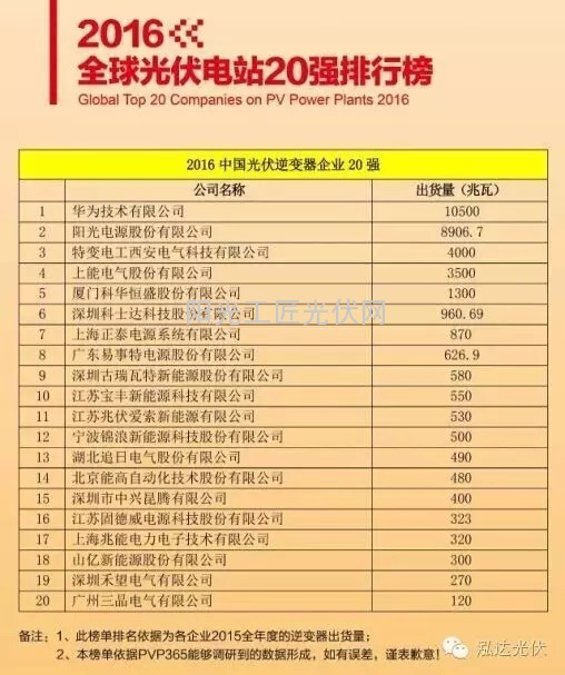 根据美国 GTM Research发布的《全球光伏逆变器和MLPE格局》报告,华为和SMA是2015年全球光伏逆变器领先厂商。排名前十位的逆变器厂商在2015年占全球出货量的75%,而中国只有阳光和华为进入前十名。按照海关统计,2015年逆变器出口,没有超过5GW。还有15GW的逆变器卖到哪里去了,恐怕只有PV365知道。