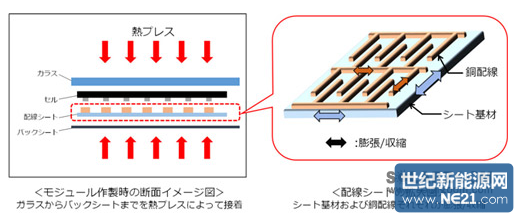 采用48个单元,是通过改良树脂薄板上的铜布线线宽、间隔及厚度等尺寸和配置,提高加工精度,并改善电池板组装时的加热冲压工序实现的。