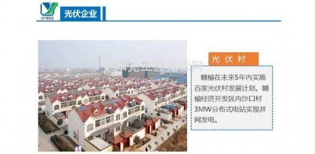 赣榆县是江苏省的‘北大门’,非常具有投资潜力与价值,尤其当地光照充足、日照时间长,非常适合太阳能光伏等新型能源产业的发展。”赣榆在未来5年内实施百家光伏村发展计划,赣榆经济开发区内沙口村3MW分布式电站实现并网发电。