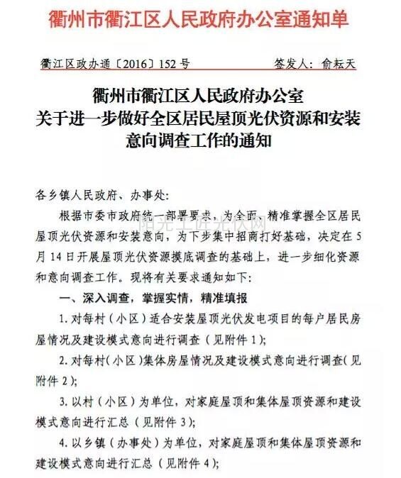 近日,记者获悉浙江省衢州市政府下发文件,要求统一部署、全面、精准排查掌握居民屋顶光伏资源和安装意向。据了解,排查项目的详细程度历史罕见。