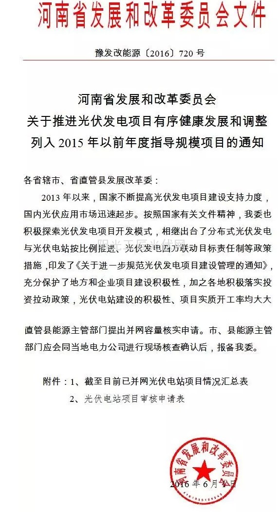 2、6月30日前未实现并网的项目,列入河南省光伏电站备选项目库,在以后安排年度指导规模时予以优先考虑。该批项目如2016年12月31日前仍未并网,取消其备选项目库资格。