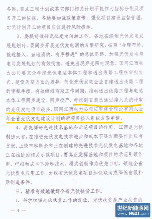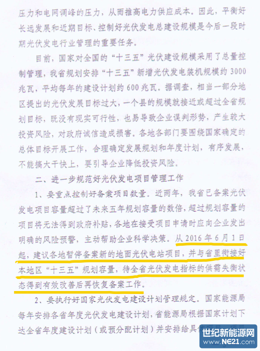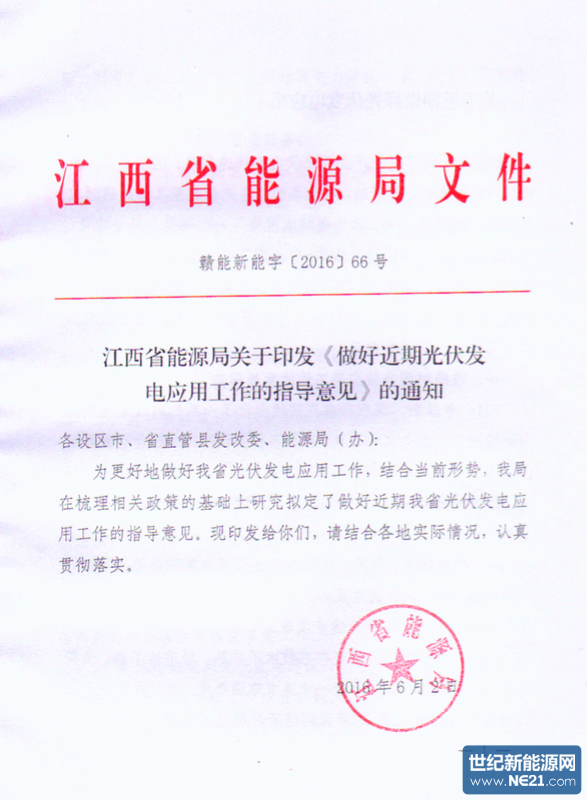 通知要求:从2016年6月1日起,建议各地暂停新增地面光伏备案申请,待全省光伏指标供需平衡后再恢复备案。国网江西公司暂停受理未列入当年全省目录项目的评审工作。