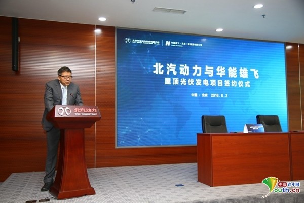 北京汽车股份有限公司常务副总裁陈桂祥致辞称:“对于绿色发展的理念追求,北京汽车与华能新能源公司高度契合。北京汽车一直秉承‘致力人文、崇尚科技、引领绿色’的企业使命。从产品研发到生产制造,将绿色生产概念贯通至整条汽车产业链的上、下游。由规模扩张的外延式增长向高端引领、创新驱动、绿色低碳的内涵式产业发展模式进行转变。对北京汽车来说,此次携手华能雄飞,将促进能源使用效率的有效提升,以及清洁能源用能比例的显著增长,以最大限度节约企业用能成本”。陈桂祥指出:“发展光伏等新能源,对于中国能源结构战略转型、大气污染防治及中国战略性新兴产业意义重大。”