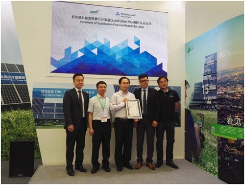 (2016上海SNEC展德国莱茵TÜV颁发晶科能源Q+认证)