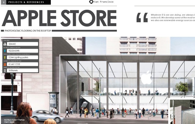 据外媒报道,苹果已经决定将在新建的零售店中采用全新的太阳能玻璃地板,消费者可以在上面行走,第一家使用这种技术的零售店是位于旧金山的Apple Store。