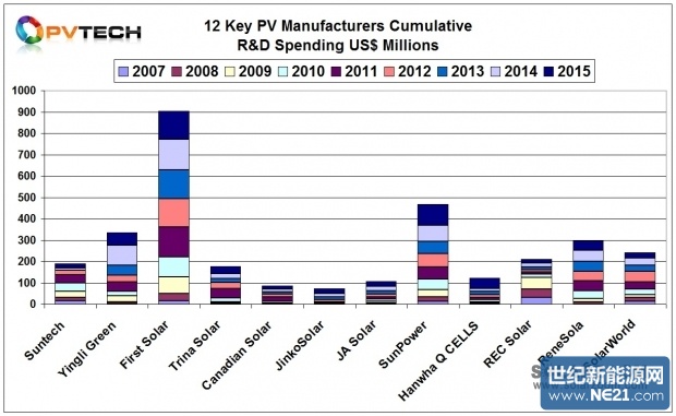自2007年以来一直是PV-Tech跟踪的十二家主要光伏组件制造商中的研发大户,自2009年以来年度研发支出一直排名最高。