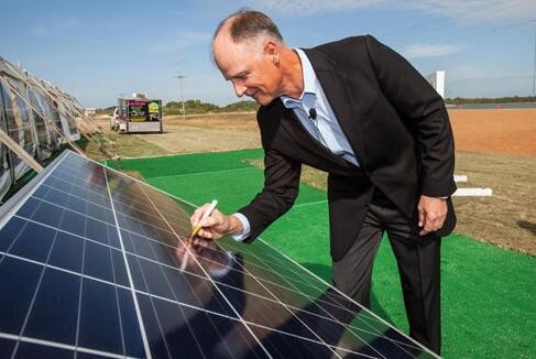 在“Babcock Ranch”项目启动时,在太阳能电池板上签字留念的Kitson&Partners公司法人代表Syd Kitson(摄影:Kitson&Partners)