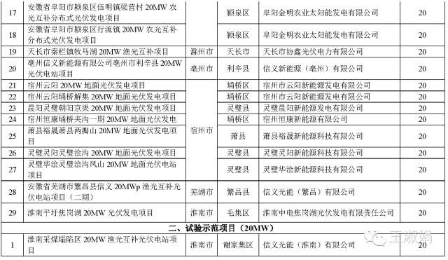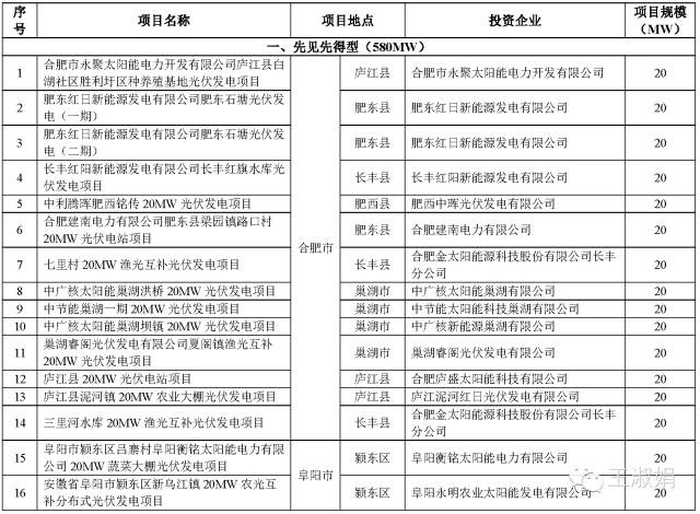 参考文件:安徽省能源局《安徽省第一批先见先得和实验示范光伏电站电站》(皖能源新能[2016]34号)