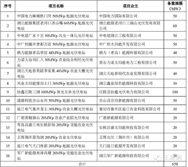 一、湖北省的先到先得项目清单(663MW-225MW)